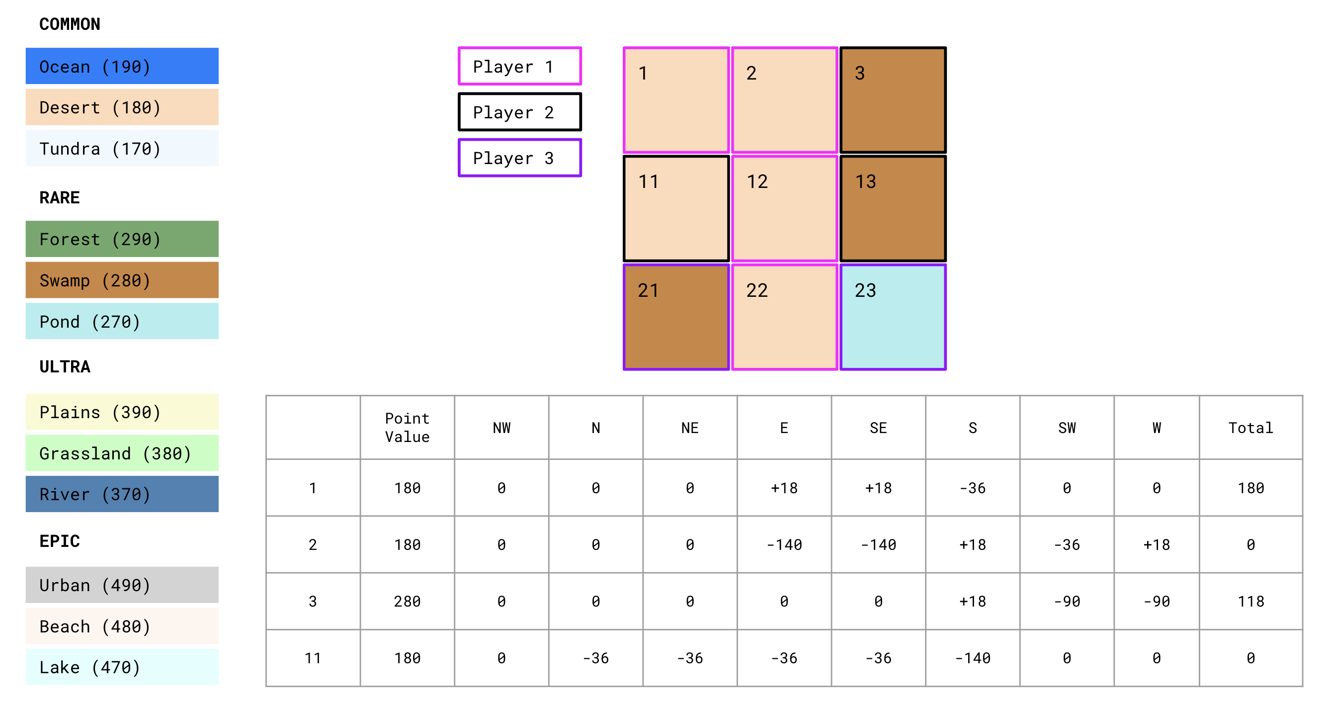 ### Terrains and Point Values